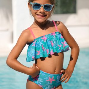 Gerüschtes Oberteil & Wende-Bikini-Set für Mädchen